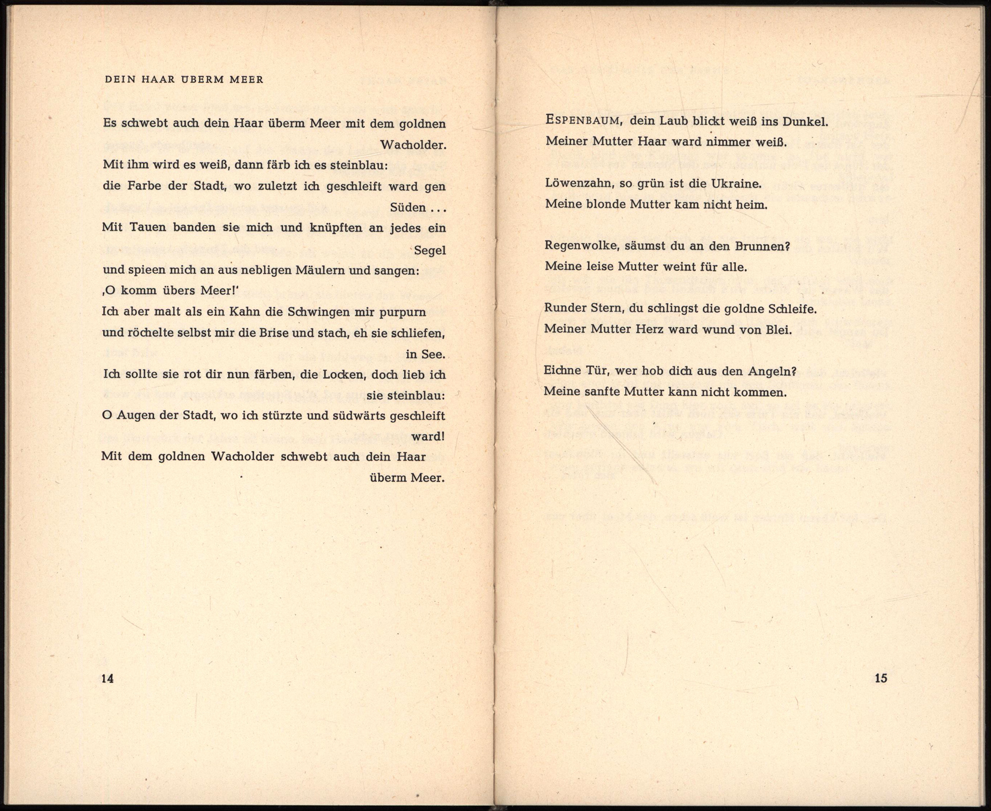 Celan, Paul: Mohn und Gedächtnis. Gedichte. [Erste Ausgabe]. Stuttgart, Deutsche Verlags-Anstalt, 1952. 8°. 19 x 12 cm. 75 Seiten. Original-Leinenband.