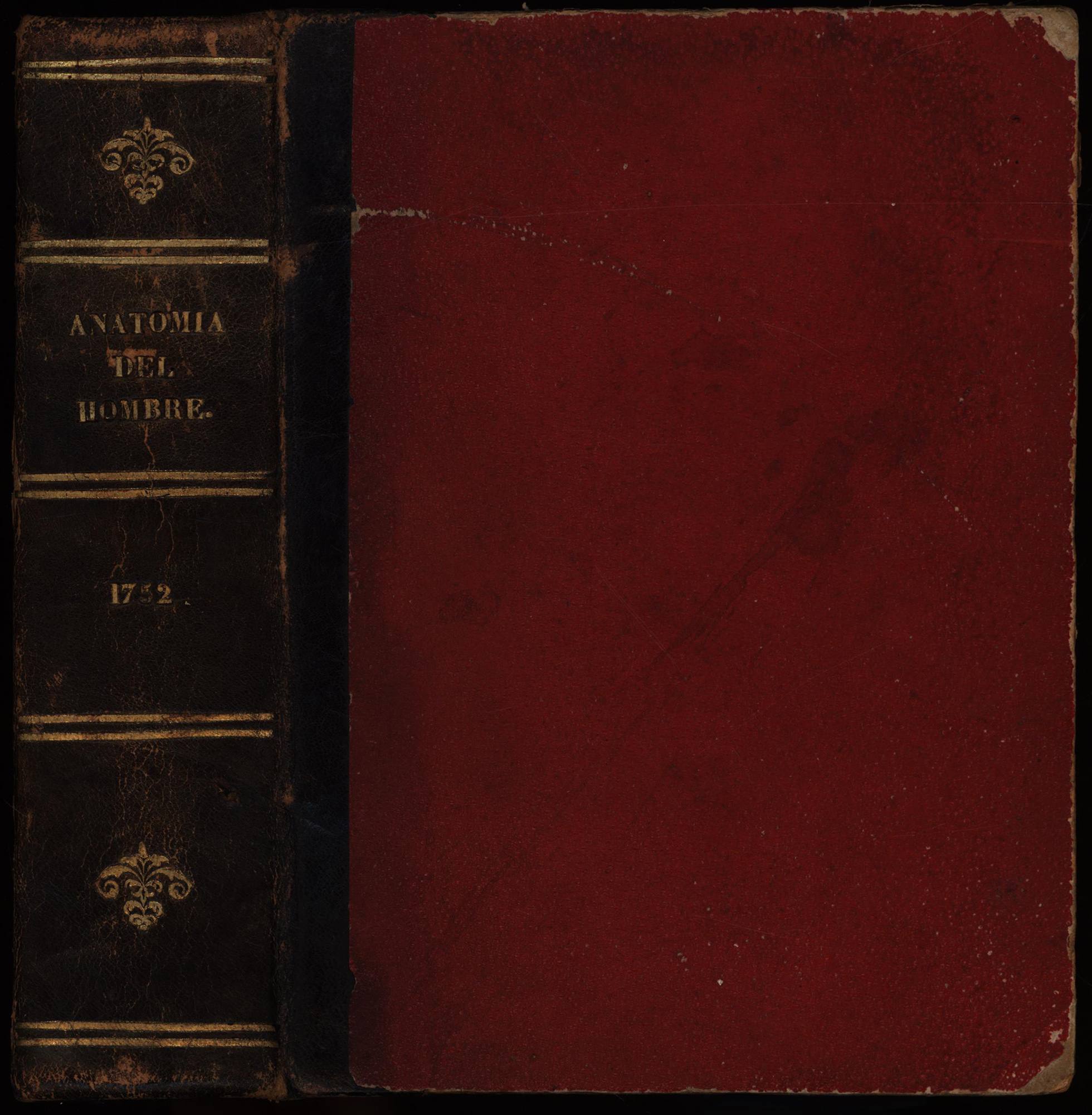 Martinez, Martin: Anatomia completa del hombre, con todos los hallazgos, nuevas doctrinas, y observaciones raras hasta el tiempo presente, y muchas advertencias necessarias para la cirugia: segun el methodo con que se explica en nuestro theatro de Madrid. Madrid, Verlag Miguel Francisco Rodriguez Erben, 1752. 8°. 20,5 x 15,5 cm. [18] Blatt, 592 Seiten, [4] Blatt. Halblederband etwas späterer Zeit mit goldgeprägtem Rückentitel, goldgeprägten Rückenfileten und blauem Sprengschnitt.