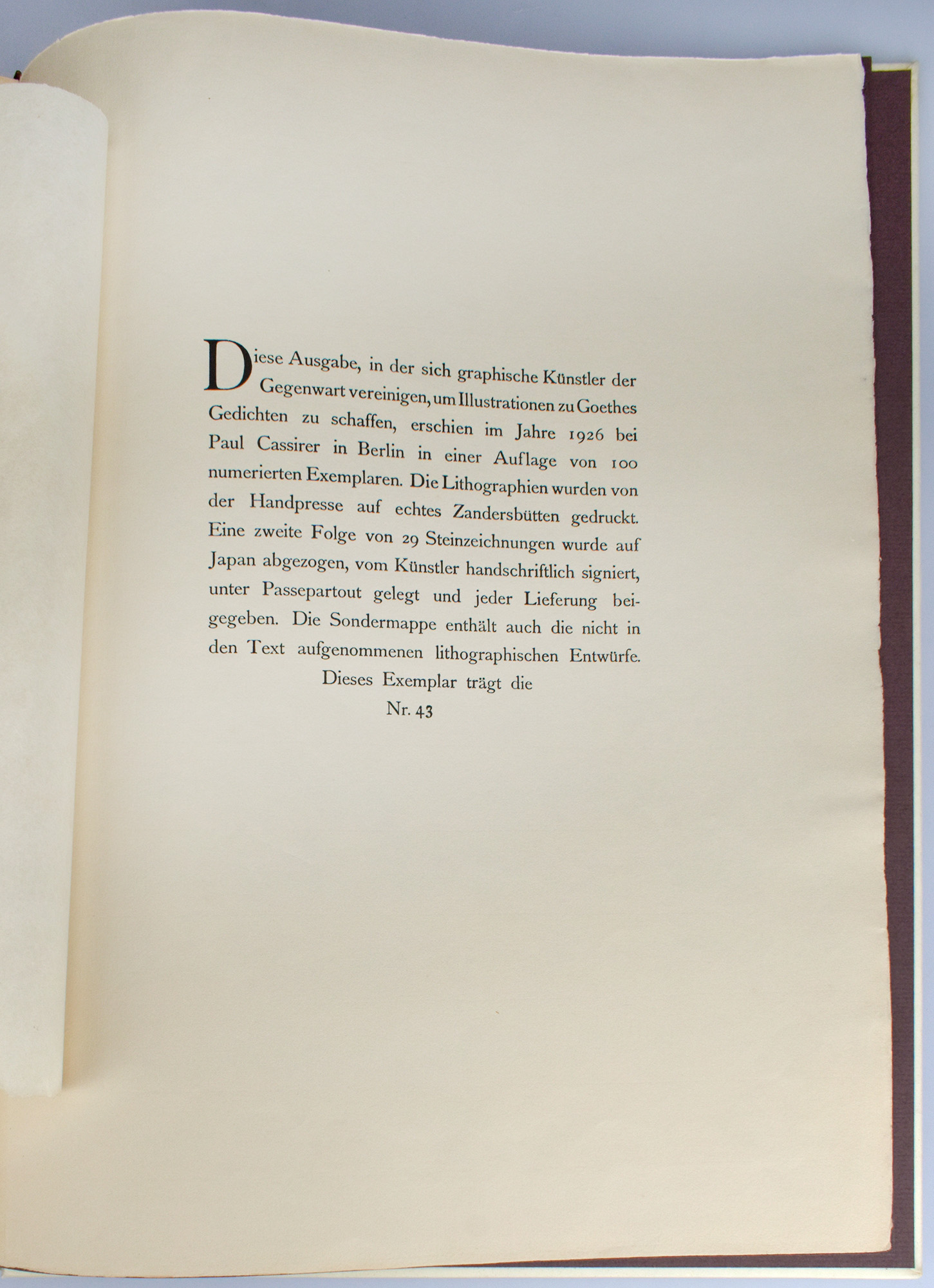 Goethe, Gedichte. Signierte Ausgabe mit Original-Lithografien.