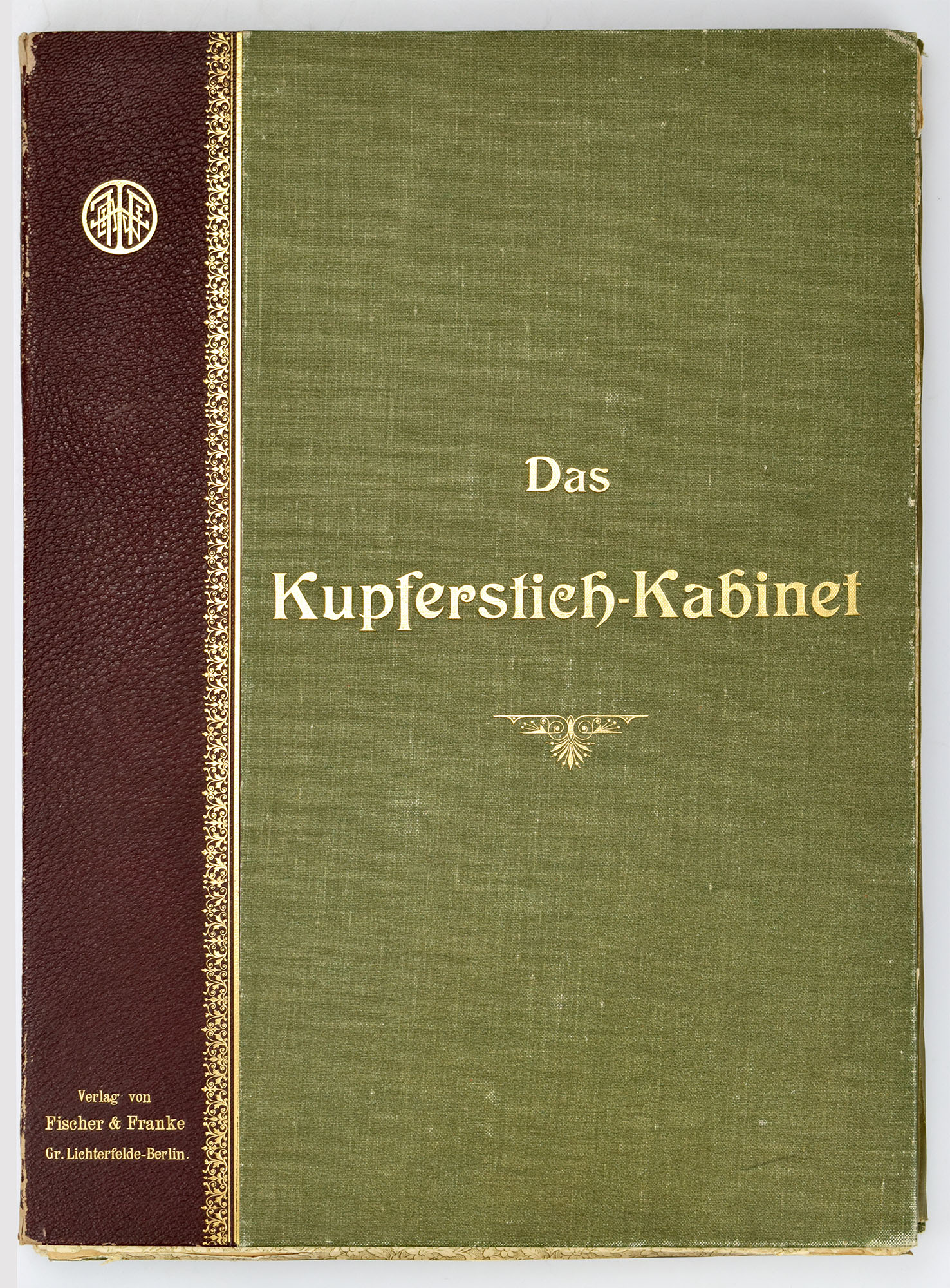Fischer von Zickwolff, Albert (Hrsg.); Franke, Willibald (Hrsg.): Das Kupferstichkabinet. Nachbildungen von Werken der graphischen Kunst vom Ende des XV. bis zum Anfang des XIX. Jahrhunderts. Erster Band. Berlin, Verlag Fischer & Franke, 1897. 2°. 41 x 30 cm. [4] Blatt und [96] Tafeln lose in Original-Halbledermappe mit goldgeprägtem Deckeltitel.