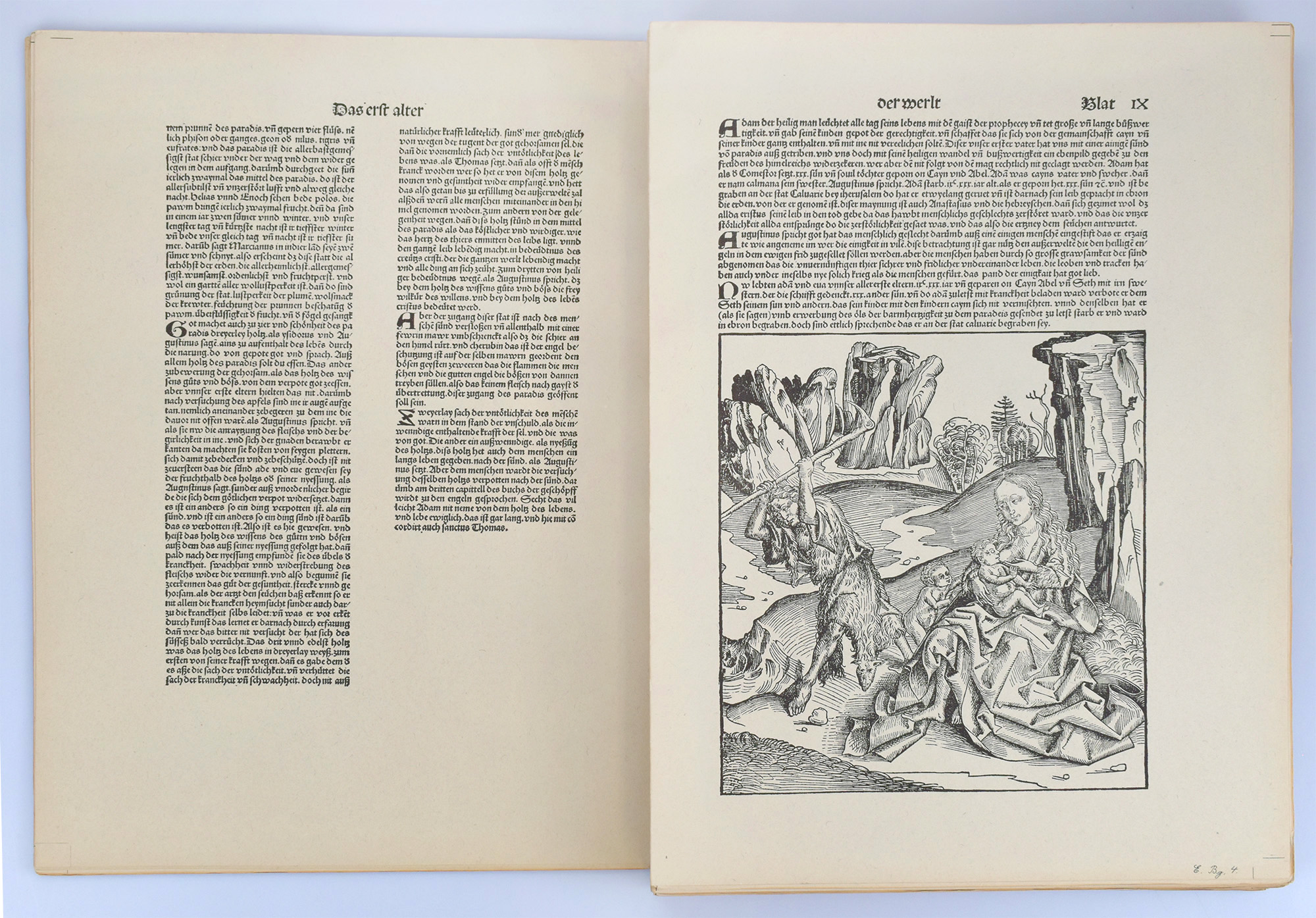 Loose sheets. Number 436 of 1,200 copies of the entire edition. Facsimile edition of the Schedel World Chronicle after the Nuremberg edition, Koberger, 1493. Contains the complete set of approximately 1,800 woodcuts of the original edition. Printed at the Offizin Max Breslauer on handmade rag paper specially produced for this book by Ferdinand Flinsch. Unbound and uncut copy. The first and last leaf noticeably, the remaining leaves occasionally minimally darkened at the extreme margins. A fine copy.