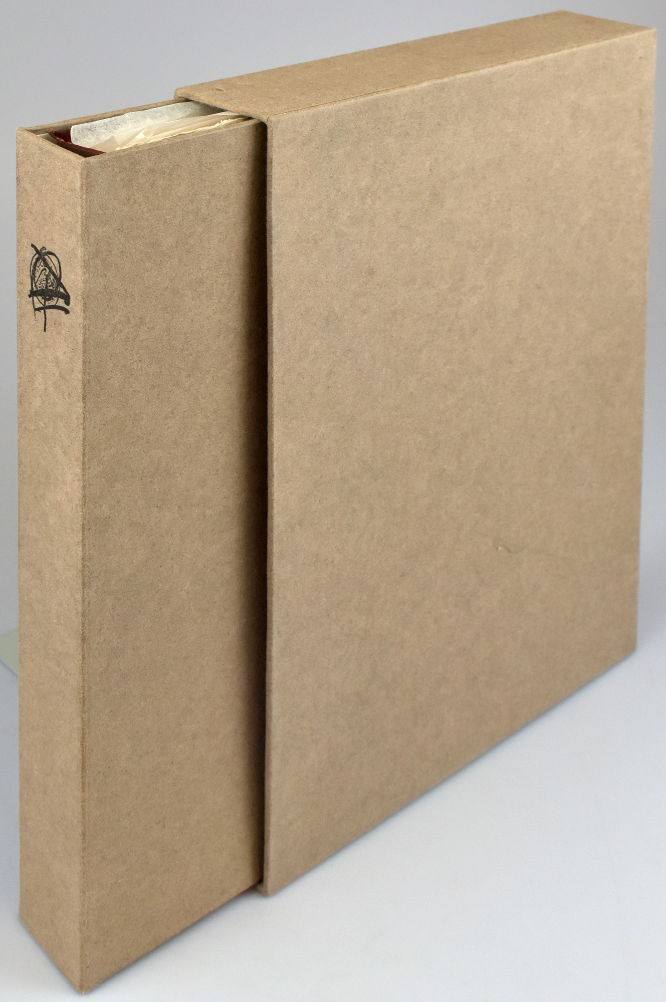 50 unnumbered sheets in accordion fold, loose in original paper wrapper and additional cellophane-protected original dust jacket, inserted in original cardboard chemise and original cardboard slipcase. Number 83 of 90 copies (total edition: 150 copies), signed in pencil by Ullán on the last sheet. Galfetti/Homs III, 823–827. Bilingual edition in French (colophon) and Spanish (the work itself). This copy includes the as usual unsigned original wrapper with original etching and carborundum, but does not include the four additional original etchings otherwise issued. Throughout with graphic works in various techniques, including punched or torn areas and/or color additions. Printed on Richard de Bas vellum. Wrapper slightly rubbed at edges. Paper lightly toned in places or with minor offsetting, otherwise fine copy.