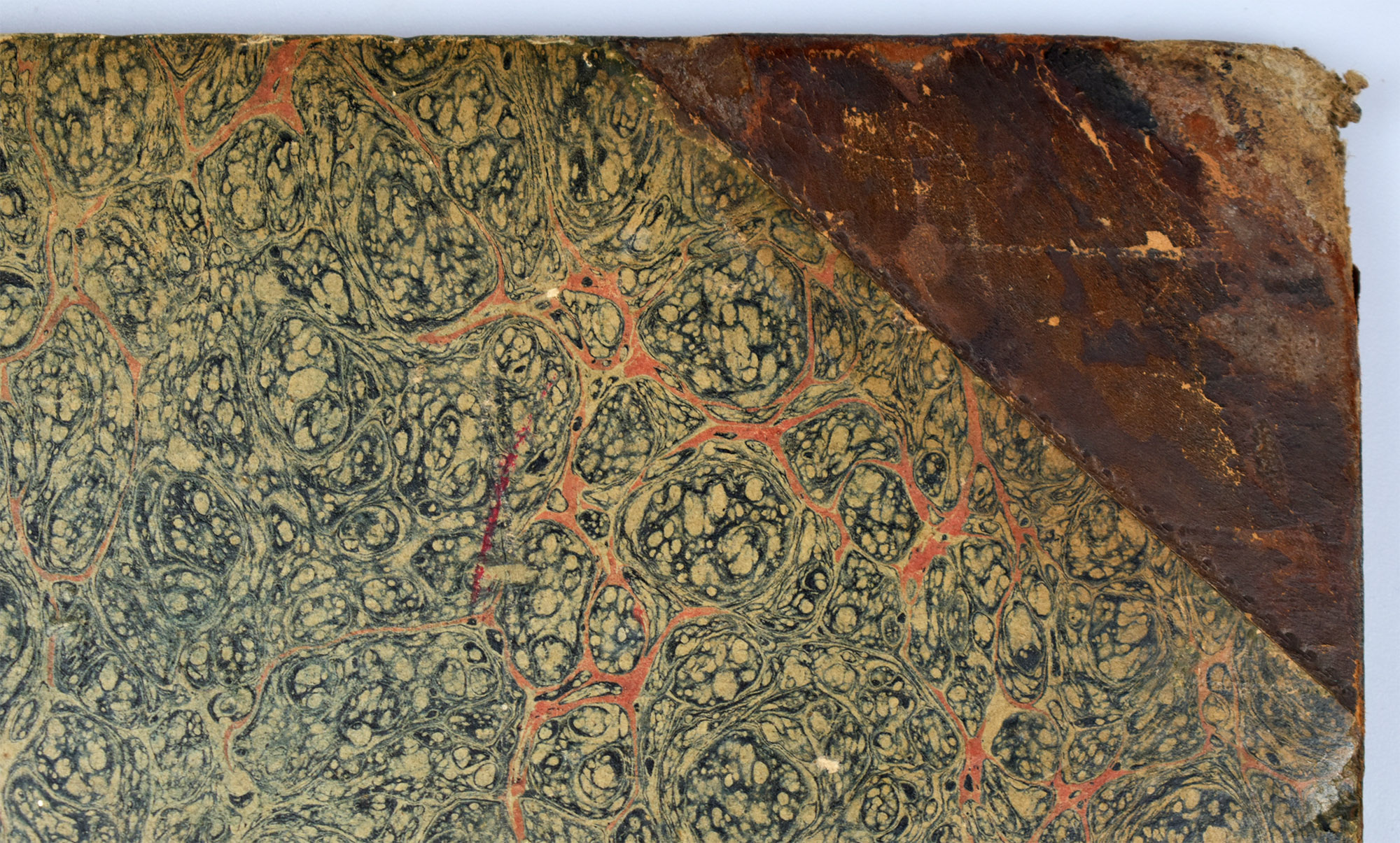 Half leather binding of the time with marbled paper boards. Part of the original wrappers used as title page. First edition. English-language edition. With 20 full-page, numbered mezzotint plates in sepia by Richard Earlom after Claude Lorrain. Binding rubbed, leather on the spine and corners with some losses. Outer joints split, front cover loosened but binding still firm. Pages lightly foxed. The mezzotints preserved in fine, clear impressions. Externally worn, otherwise a good to very good copy.