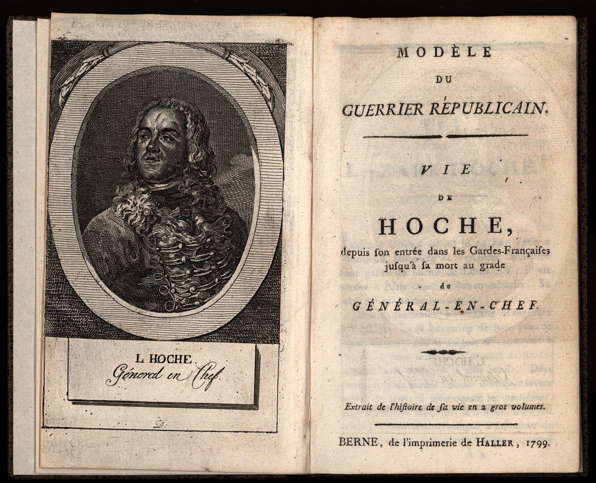 Rousselin de Saint Albin, Alexandre Charles Omer: Modèle Du Guerrier Républicain. Vie De Hoche, depuis son entrée dans les Gardes-Françaises jusqu’à sa morte au grade de Général-En-Chef. Éxtrait de l’histoire de sa vie en 2 gros volumes. Bern, Verlag Haller, 1799. Klein-8°. 17,5 x 11 cm. 88 Seiten. Neuerer Pappband im Stile der Zeit.