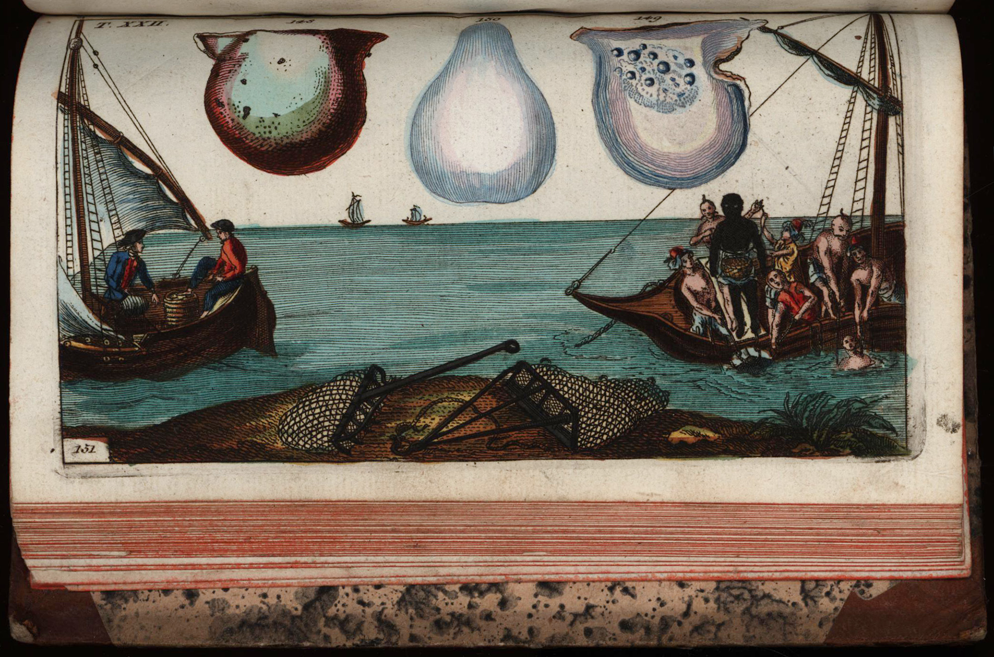 Erste Ausgabe. Nissen 4408. Graesse VII, 450. Mit gestochenem Titelblatt und 56 altkolorierten Kupfertafeln. Einband etwas beschabt, am oberen Kapital und im hinteren Außengelenk mit schmalen Fehlstellen im Lederbezug. Seiten stellenweise leicht stockfleckig, einige Seiten und die letzten drei Tafeln mit blassem Wasserrand (zwar zum Teil mit Bildberührung, jedoch ohne Einschränkung der Bildqualität). Tafeln mit leichtem Farbdurchschlag verso. Tafel 3 mit kleiner Fehlstelle im weißen Rand, Tafel 47 mit auf der Bildseite unscheinbarem Randeinriss (umseitig mit transparentem Klebeband repariert, leichte Bildberührung, jedoch ohne Bildverlust). Gutes bis sehr gutes Exemplar mit Kupferstichen in kräftigen Abdrucken und schöner Handkoloration.