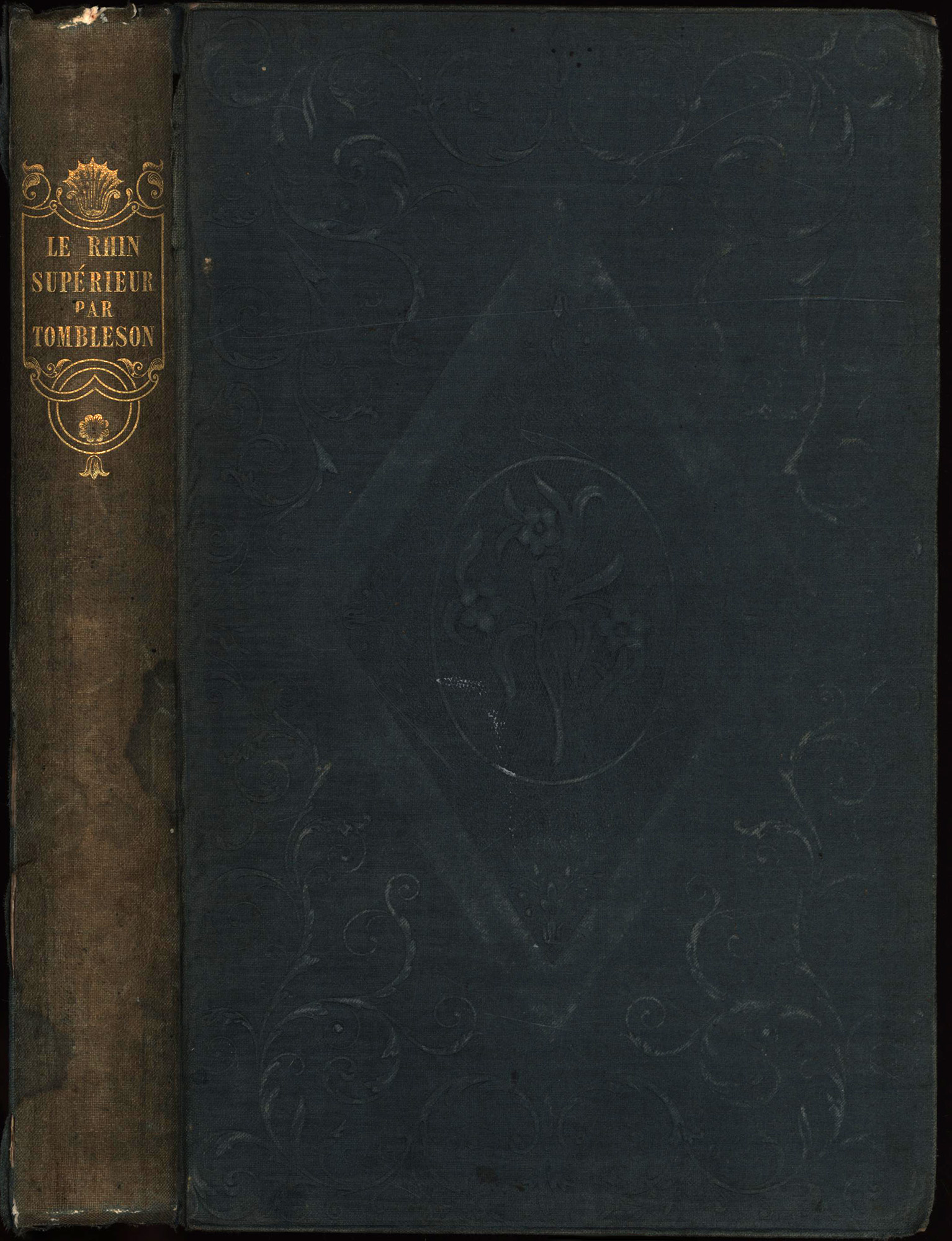 Tombleson, William: Tombleson’s Upper Rhine. Ober Rhein. Le Rhin Superieur. London, Tombleson Verlag, [um 1840]. 4°. 27 x 20,5 cm. VIII, 181 Seiten, [1] Blatt. Leinenband der Zeit mit goldgeprägtem Rückentitel, reicher floraler Blindprägung und Rundum-Goldschnitt.