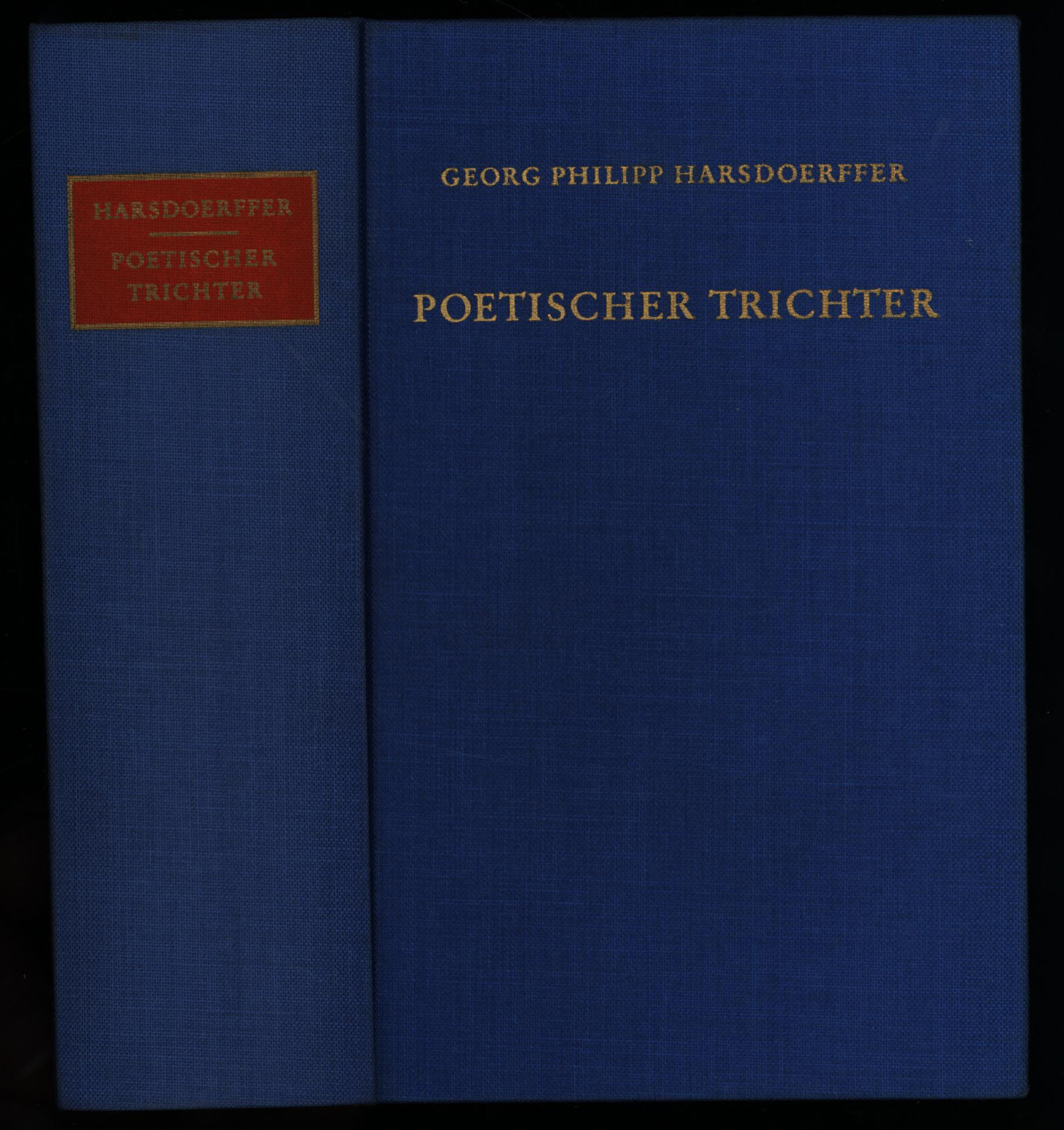 Harsdörffer, Georg Philipp: Poetischer Trichter. Darmstadt, Wissenschaftliche Buchgesellschaft, 1975. Klein-8°. 16 x 10 cm. 563 Seiten. Original-Leinenband mit goldgeprägtem Deckel- und Rückentitel.