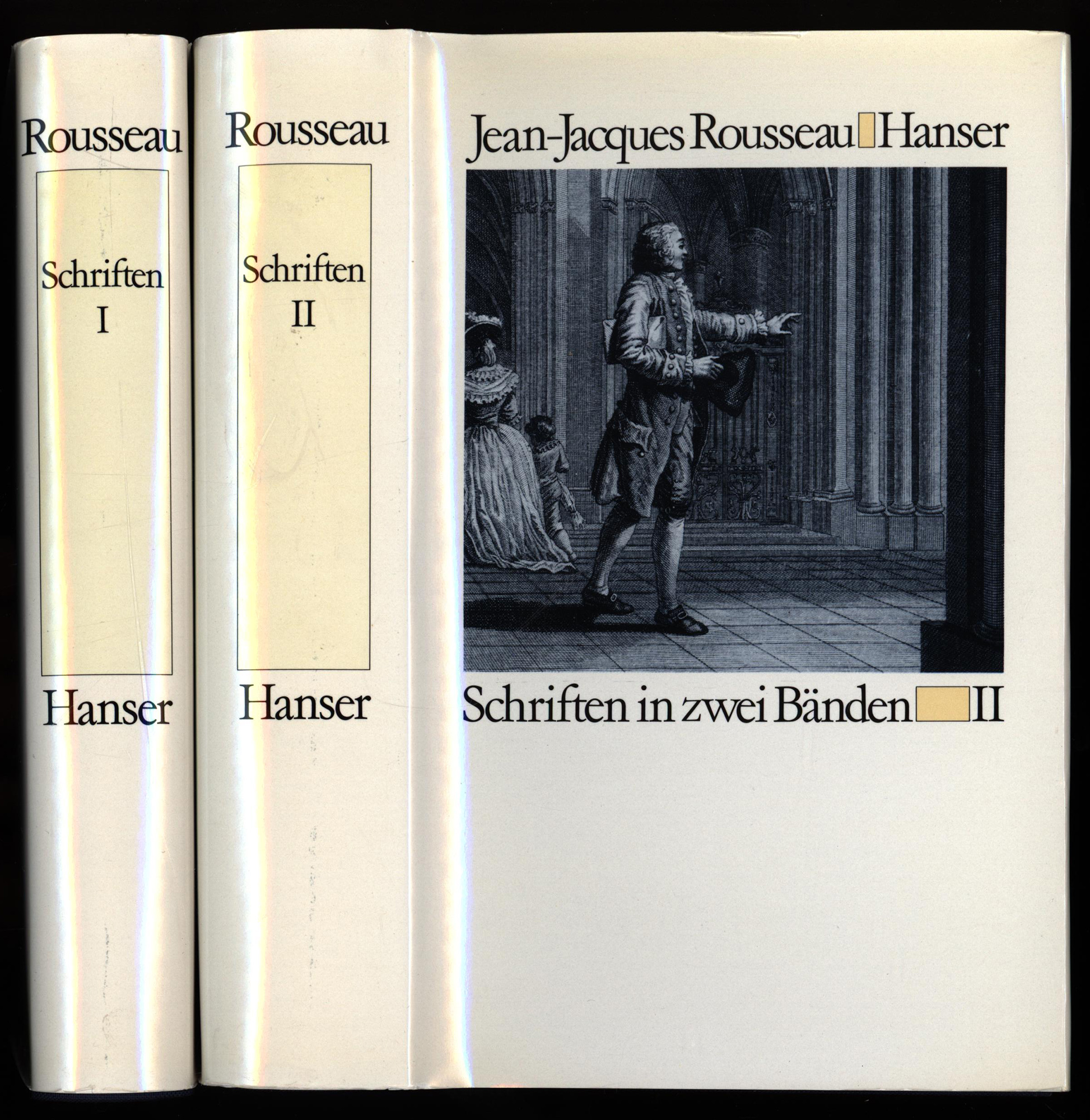 Rousseau, Jean-Jacques: Schriften in zwei Bänden. München/Wien, Hanser Verlag, 1978. 8°. 20 x 12,5 cm. 654; 811 Seiten. Original-Leinenbände mit Original-Schutzumschlägen. Pappschuber. (= Hanserbibliothek).