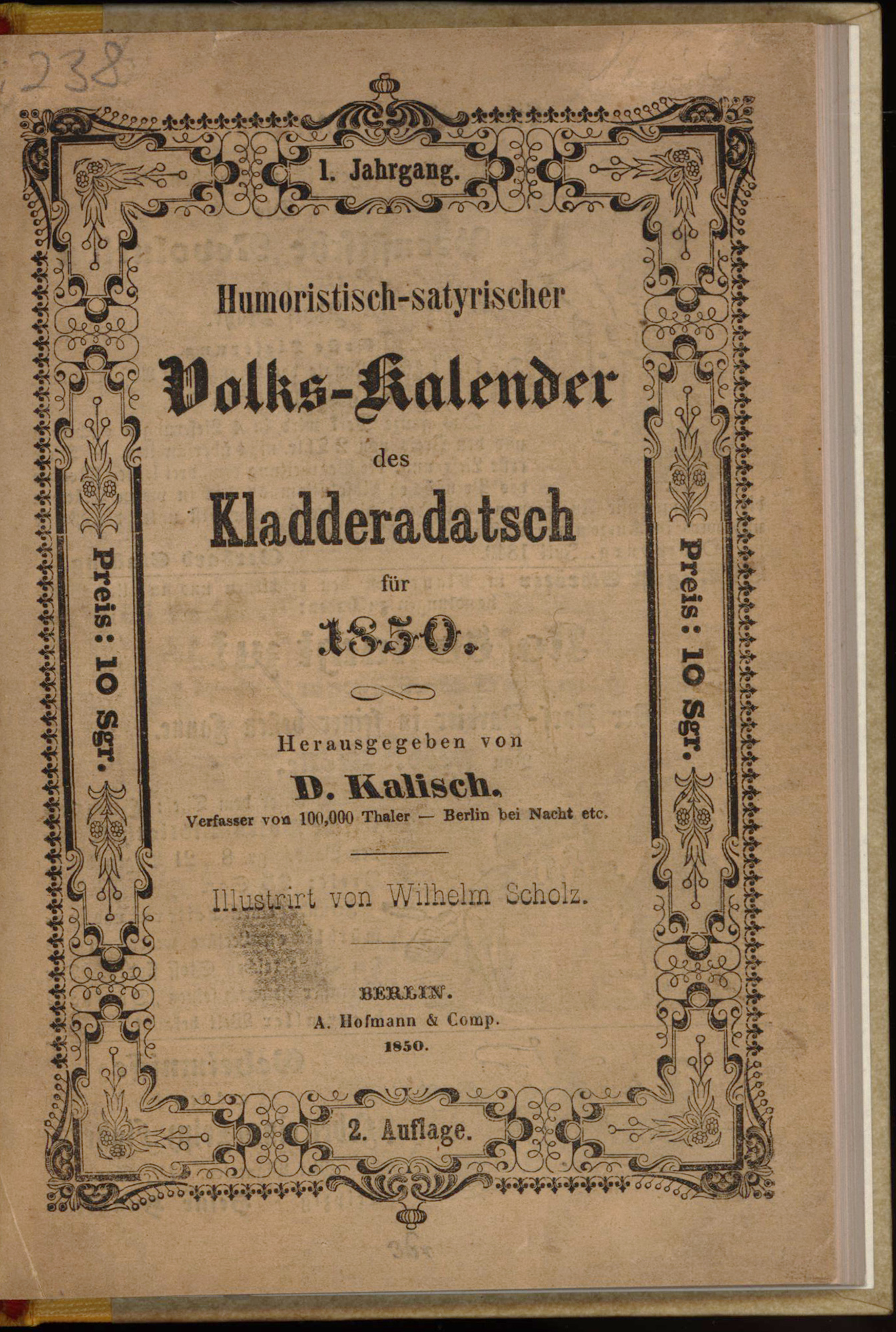 Kalisch, Humoristisch-satyrischer Volks-Kalender des Kladderadatsch für 1850. 1.