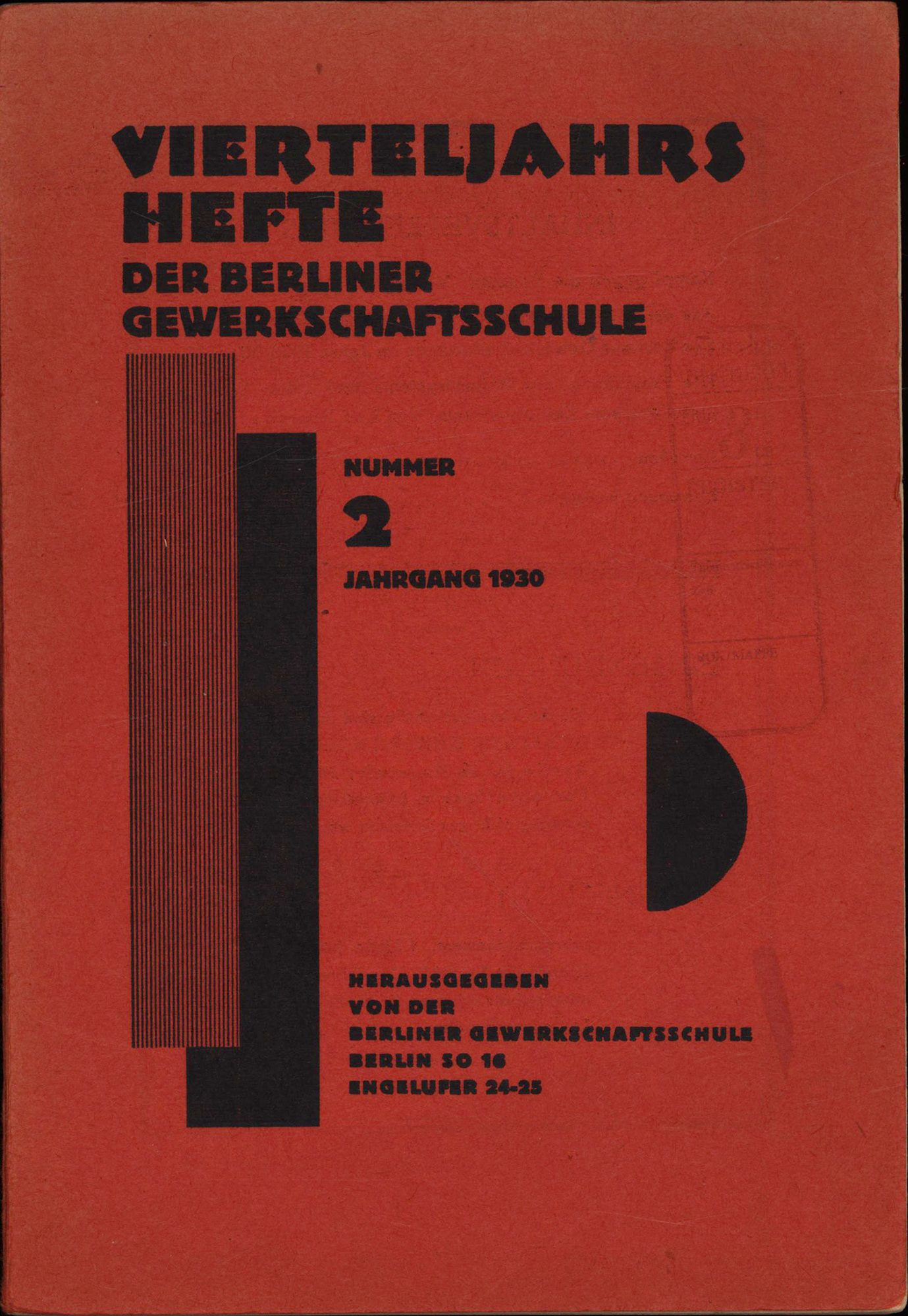 Vierteljahrshefte der Berliner Gewerkschaftsschule Heft 2, Jahrgang 1930. Berlin, Selbstverlag, 1930. 8°. 22,5 x 15,5 cm. 79 Seiten, [3] Blatt. Original-Broschur.