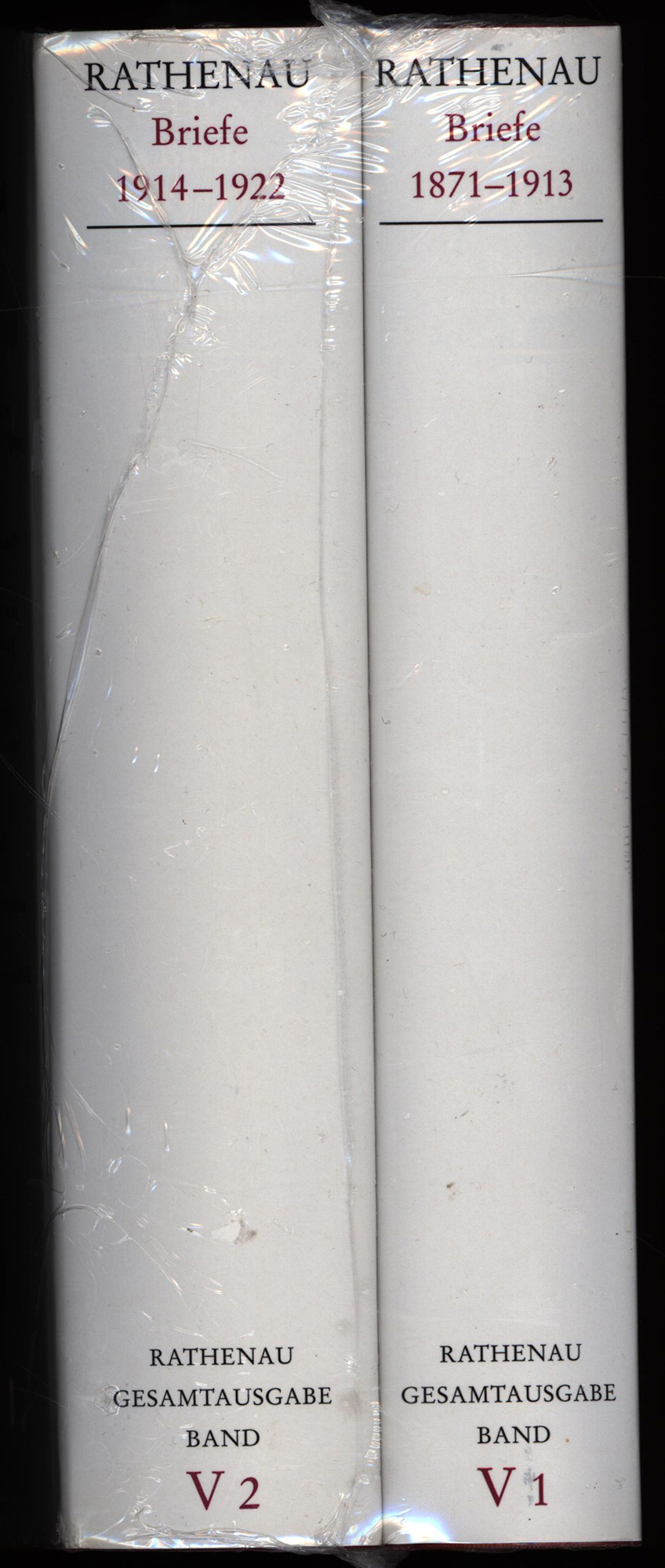 Rathenau, Walther: Walther-Rathenau-Gesamtausgabe. Band 5: Briefe. Teilband 1: 1871-1913. Teilband 2: 1914 – 1922. Herausgegeben von Alexander Jaser, Clemens Picht und Ernst Schulin. 2 Bände. Düsseldorf, Droste, 2006. Groß-8°. 23 x 15 cm. 2829 Seiten. Original-Leinenbände mit Original-Schutzumschlägen. (= Schriften des Bundesarchivs, 63,5,1,2).
