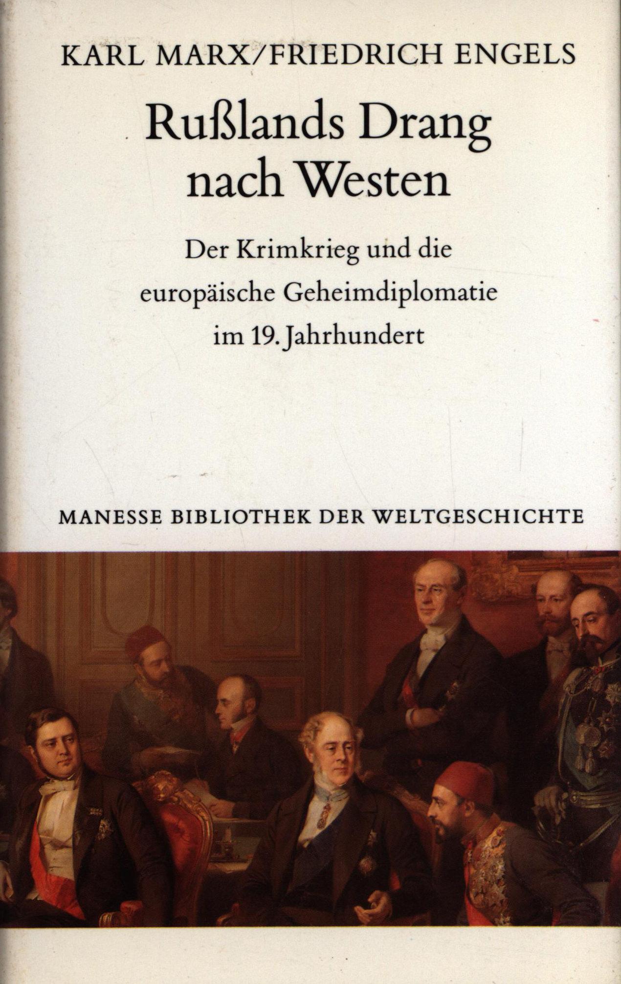 Marx, Karl und Engels, Friedrich: Rußlands Drang nach Westen. Der Krimkrieg und die europäische Geheimdiplomatie im 19. Jahrhundert. Mit einem Nachwort von Lothar Rühl. Zürich, Manesse Verlag, 1991. Klein-8°. 17,5 x 11 cm. 719 Seiten. Original-Leinenband mit Kopffarbschnitt und Original-Schutzumschlag. (= Manesse Bibliothek der Weltgeschichte).