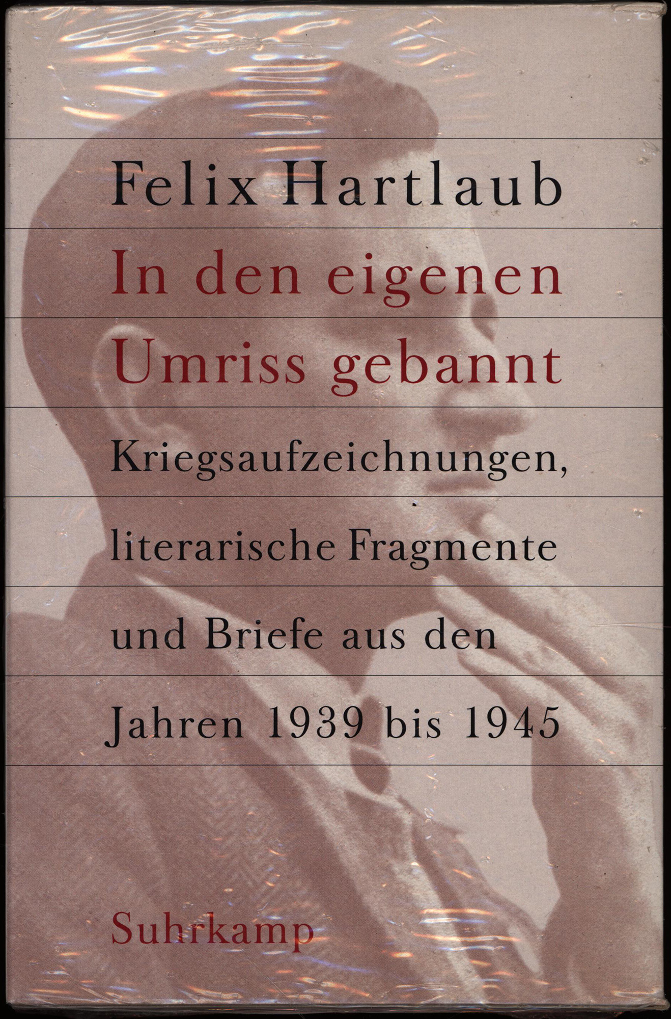Hartlaub, Felix: „In den eigenen Umriss gebannt“. Kriegsaufzeichnungen, literarische Fragmente und Briefe aus den Jahren 1939 bis 1945. Band 1: Texte. Band 2: Kommentar. 2 Bände (komplett). Frankfurt am Main, Suhrkamp, 2002. 8°. 22 x 15 cm. 747 und 377 Seiten. Original-Pappbände.