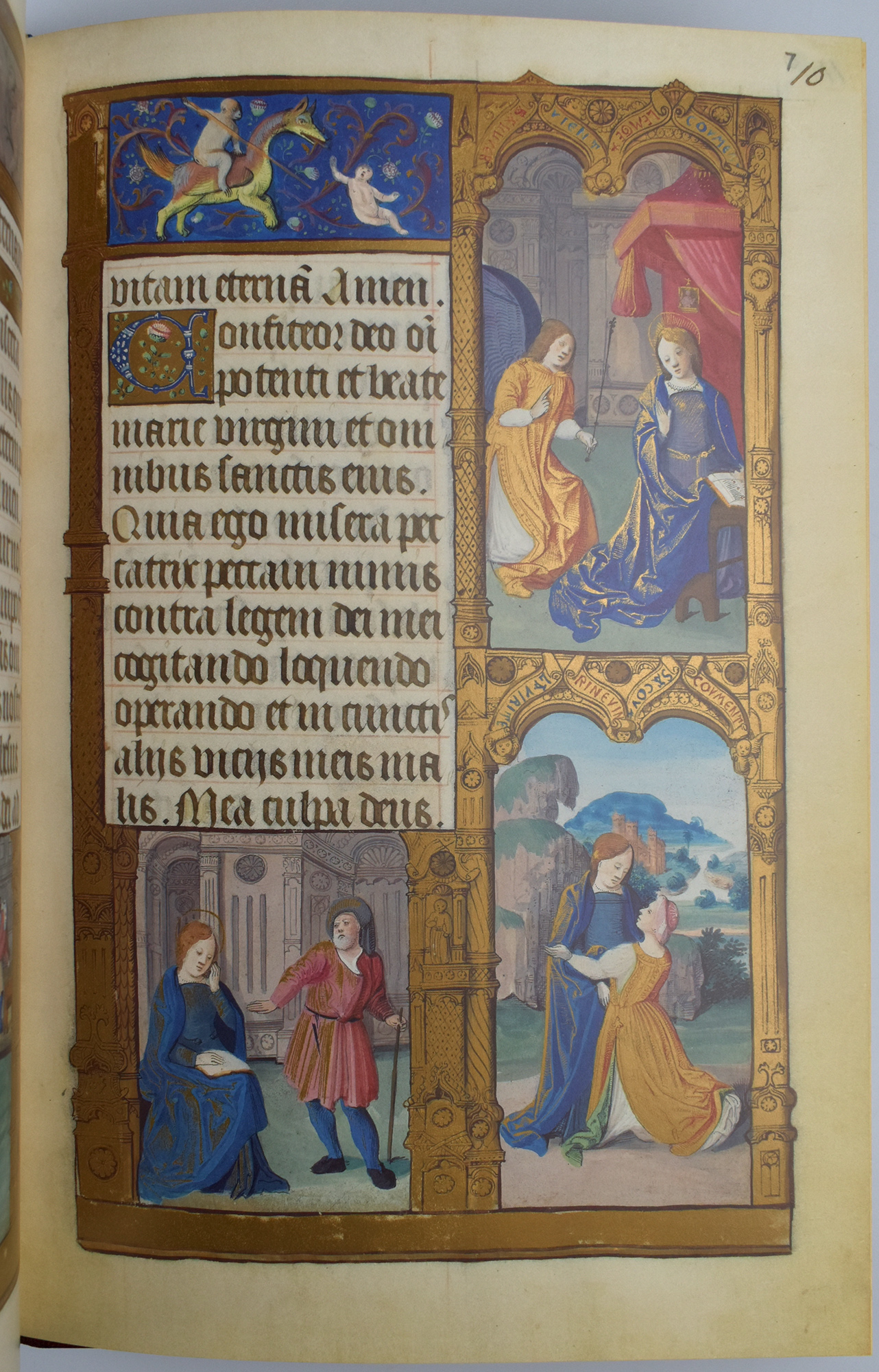 Vollfaksimile der Ms 159 im Fitzwilliam Museum, Cambridge. Nummer 623 von 980 arabisch nummerierten Exemplaren (Gesamtauflage: 1060 Exemplare). Faksimileband in Latein, Kommentarband in Deutsch und Englisch. Mit 2 ganzseitigen, goldgehöhten Miniaturen in Farbe mit goldenen, architektonischen Zierrahmen und 36 kleineren, goldgehöhten Minaturen in Farbe, davon immer 3 auf einer Zierseite in ebenfalls goldenen architektonischen Rahmen mit integrierten Vignetten in Farbe und integriertem Text mit blauen oder roten Schmuckinitialen auf goldenem Grund mit floralen Elementen. Hinterer Vorsatz mit personalisiertem Exlibris der Edition. Schuber minimal berieben und mit zwei blassen Fleckchen am Kopf. Sehr gutes Exemplar.