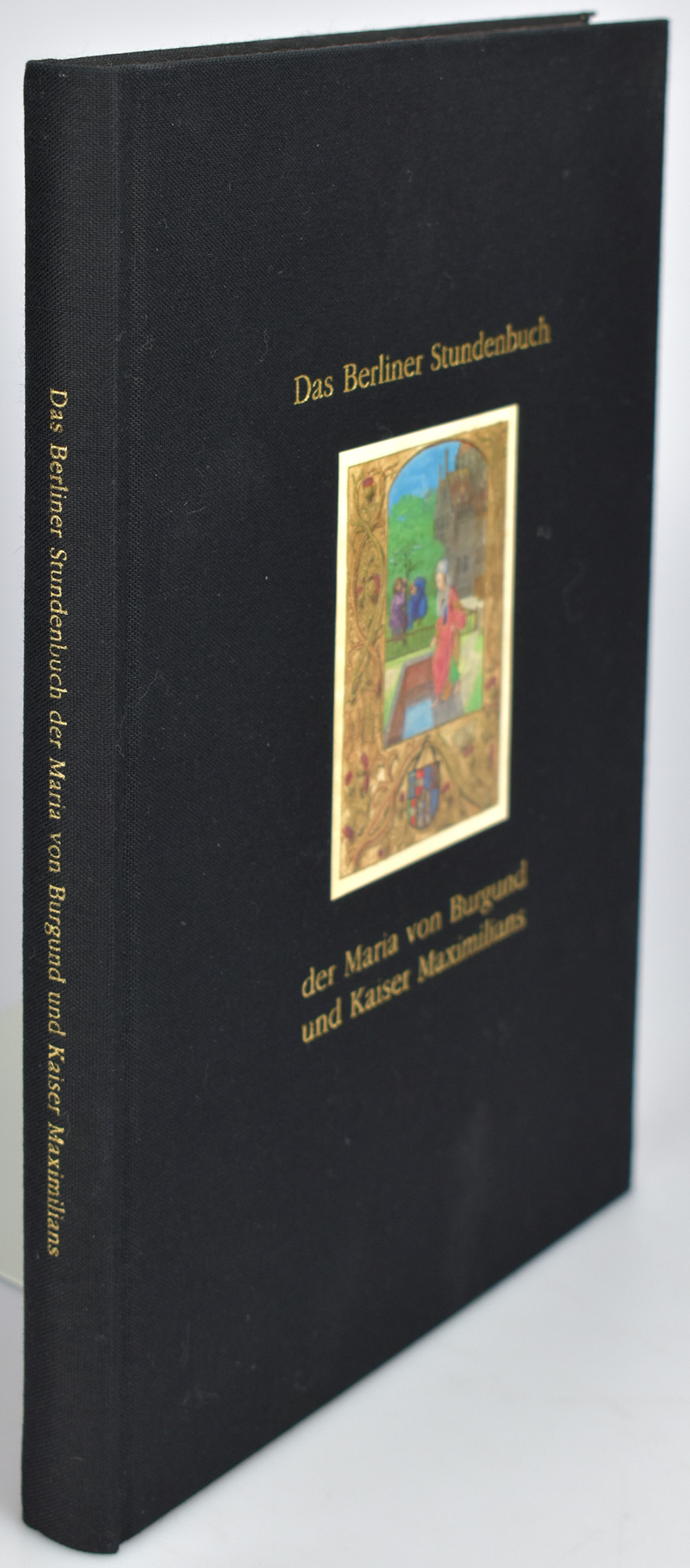 König, Eberhard (Hrsg.): Das Berliner Stundenbuch der Maria von Burgund und Kaiser Maximilians. 2 Bände (Faksimile und Kommentarband, komplett). Lachen am Zürichsee/Luzern, Coron-Verlag/Faksimile Verlag, 1999. 12° bzw. 4°. 13 x 10,5 cm bzw. 29,5 x 21,5 cm. Faksimile in rotem Original-Samteinband mit verzierter Messingschließe und Rundum-Goldschnitt im geschlossenen Original-Lederschuber mit goldgeprägtem Rückentitel und faksimiliertem Signaturschild. Kommentarband in Original-Leinen mit goldgeprägten Rücken- und Deckeltiteln und montierter Deckelabbildung.