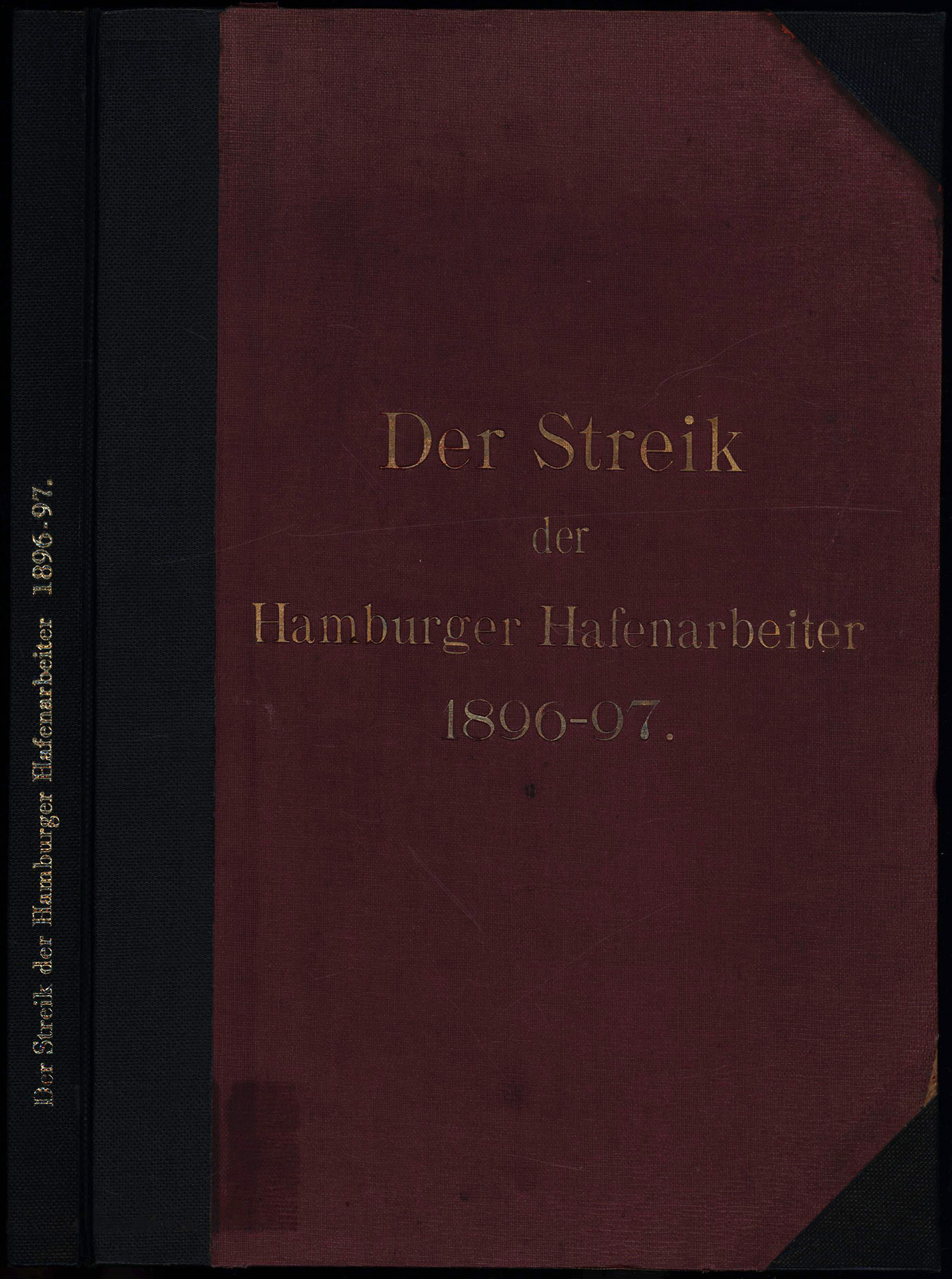 Der Streik der Hamburger Hafenarbeiter 1896/97. Amtliche Darstellung nach den Akten der Abteilung II (polistische und Criminal-Polizei) der Polizei-Behörde Hamburg. Hamburg, gedruckt bei Lütcke & Wulff, 1897. 4°. 26,5 x 19 cm. 133 Seiten. Halbleinenband späterer Zeit mit goldgeprägtem Rücken- und Deckeltitel, in Gold illustrierten Vorsätzen und marmoriertem Schnitt.