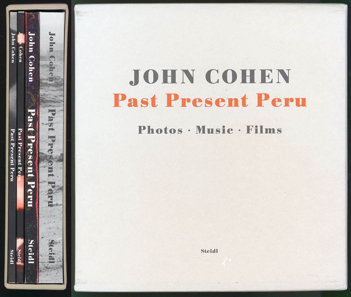 Cohen, John: Past present Peru. Photos, Music, Films. Andean Textiles. 2 Bände + 8 CD´s. Göttingen, Steidl, 2010. 4°. 30 cm. 199 und 83 Seiten. 2 Original-Pappbände, und 2 Original-Faltmappen im Original-Pappschuber.