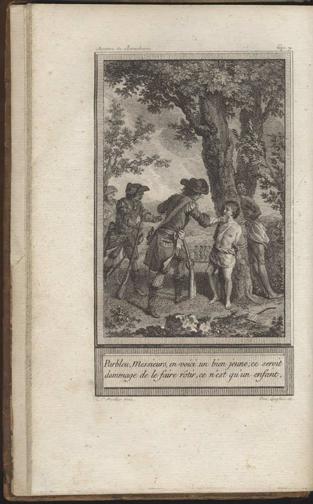 Le Sage, Alain René [Red.]: Les Aventures De M. Robert Chevalier, Dit De Beauchêne, Capitaine De Flibustiers Dans La Nouvelle-France. Redigees par M. Le Sage. 6 Bücher (in 1, komplett) / 6 books (in 1, complete). A Amsterdam & se trouve à Paris, Rue et Hotel Serpente [ohne Verlagsangabe], 1783. 8°. 20 x 13 cm. Vortitel, Titelblatt, 476 Seiten. Ganzlederband der Zeit mit goldgeprägten Rückentiteln auf rotem und grünem Lederschildchen und blauem Sprengschnitt.