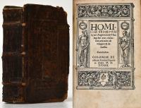 Beda Venerabilis: Homiliae Venerabilis Bedae Presbyteri Anglosaxonis, theologi suo aeuo celeberrimi, hyemales & quadragesimales de tempore ac sanctis. Nunc primum summa diligentia restitutae & in lucem aeditae. 2 Bände [in 1, komplett]. Köln, Verlag Johann Gymnich, 1534. Klein-8°. 17 x 11,5 cm. [8] Blatt, 351 Seiten; 403 Seiten, [4] Blatt. Lederband der Zeit über Holzdeckeln auf 3 echten Bünden mit reicher Blindprägung.