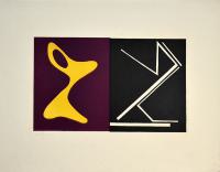 Arp, Hans – Taeuber-Arp, Sophie: „Geh durch den Spiegel“, Folge 14/1958. Katalog zur Ausstellung in der Galerie Der Spiegel, Köln. [Mit 3 Original-Grafiken]. Köln, Galerie Der Spiegel, 1958. Groß-4°. 38 x 26 cm. [16, 3] Blatt. Illustrierter Original-Pappband.