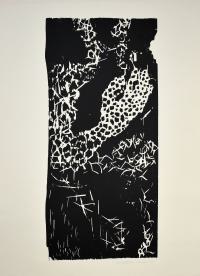 Auberger, Pidder: Holzschnitt Nr. 61 A (schwarz). [2008]. [Signierter Original-Farbholzschnitt / signed original color woodcut]. Pidder Auberger (eigentlich Johann Peter Auberger), geboren 1946 in Dinslaken-Lohberg, gestorben 2012 in Burbach/Westerwald. Deutscher bildender Künstler und Fotograf. Studium 1970 bis 1975 an der Staatlichen Kunstakademie Düsseldorf bei Peter Brüning und Gerhard Richter.
