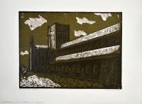 Ackermann, Helmut: Holzschnitt zu Vergils Aeneis 2 [Original-Holzschnitt / original woodcut]. Helmut Ackermann, geboren 1936 in Memmingen.
