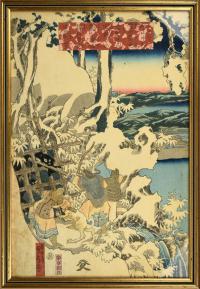 Utagawa Kunisada II, Wakana no jô. 1857. Signierter Original-Farbholzschnitt.