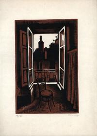 Krauskopf, Stadtansicht. 19.5.62. [Signierter Original-Holzschnitt, koloriert].