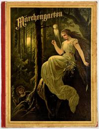 Caspari, Gertrud: Spiel und Scherz und ein wenig Schmerz. [Fürth], [Löwensohn Verlag], [um 1920]. 4°. 31,5 x 24,5 cm. 6 ungezählte Seiten. Original-Halbleinenband mit farbiger Deckelilustration und rotem Titelschriftzug.