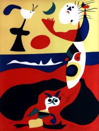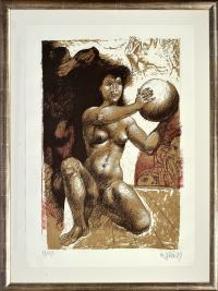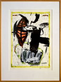 Adami, Statuette. (1982). [Signierte Original Farblithografie, gerahmt].