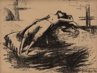 Adami, Tanzendes Paar im Atelier. Signierte Original-Farblithografie.
